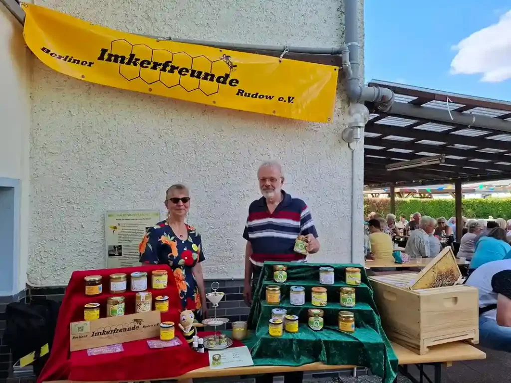 Einer langjährigen Tradition folgend und anlässlich des „Tag der deutschen Imkerei“ trafen sich am Sonntag, den 6. Juli 2025 Mitglieder des Imkervereins Berlin-Tempelhof e.V. und der Berliner Imkerfreunde Rudow e.V. zu einem geselligen Sonntagsbrunch am Bienenhaus im Britzer Garten.